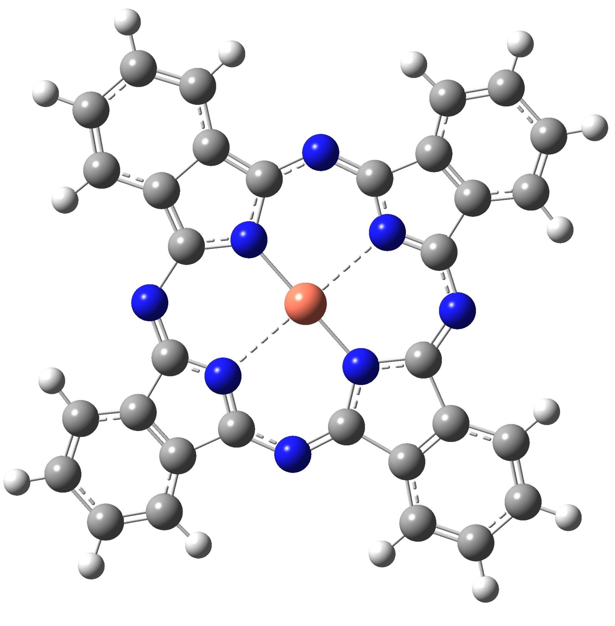 η-CuPc, active or HIL layer material for LEDs and organic solar cells. Low price and high purity sublimed grade ideal for organic electronics. η-Copper(II) phthalocyanine, CAS No. 147-14-8, Sublimed ≥99.0%. η-CuPc, known as η-phthalocyanine blue or pigment blue 15, has been used as an electron donor with fullerene-C60 or phenyl-C61-butyric acid methyl ester (PCBM) in vacuum-deposited organic photovoltaics (OPV)[1]. Power conversion efficiency of about 1% has been achieved [2] and improved efficiency of 4% with pentacene-doped η-CuPc layer [3]. η-CuPc has also been used as a hole-injection material for light-emitting diodes. It has been reported that a thin η-CuPc layer may effectively enhance the hole injection from the anode to the emissive-polymer layer, resulting in a dramatic decrease of operating voltage of the device [4]. Device stability was achieved by depositing a η-copper phthalocyanine (η-CuPc) hole-injection layer (HIL) on the ITO anode. The improved stability of the device could be contributed to the good match of its highest-occupied molecular orbital (HOMO) level to the work function of ITO, and the improved wetting property of organic materials on ITO. Moreover, η-CuPc has very weak absorption of light, with wavelengths from 400 to 500 nm, making it suitable for use in blue and green OLEDs. Effective electron-blocking was also observed for inorganic–organic hybrid perovskite solar cells when η-CuPc-doped Spiro-OMeTAD was used as the hole-transporting layer [5].
