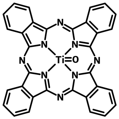 β-Titanium phthalocyanine (TiOPc), CAS number 26201-32-1, the family member of highly photosensitive phthalocyanine compounds, is one of the most successful leading materials used in the photocopying industry. Among various phthalocyanine semiconductors, oxotitanium phthalocyanine in the crystal form of phase-Y (Y-TiOPc) has attracted particular attention due to its high photosensitivity to NIR light. The quantum efficiency of Y-form TiOPc for photo carrier generation is reported to be almost 100% in high electric fields[2]. β-Titanium phthalocyanine is used as a water photo-oxidation agent and is built into sensors for NO2 detection. It has also been made into devices for of organic light-emitting diodes (OLEDs) and organic photovoltaics (OPVs) with photon to current efficiency (PCE) over 4% reported by using TiOPc as the light-harvesting dye and C60 as the electron acceptor [3-6].
